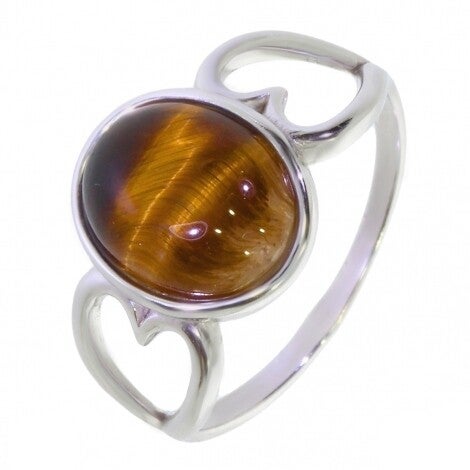 Bague en oeil de tigre argent massif 925/1000 rhodié 2624 T49