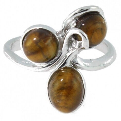 Bague en oeil de tigre argent massif 925/1000 rhodié 3418 T49