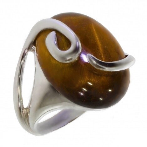 Bague en oeil de tigre argent massif 925/1000 rhodié 5804 T52