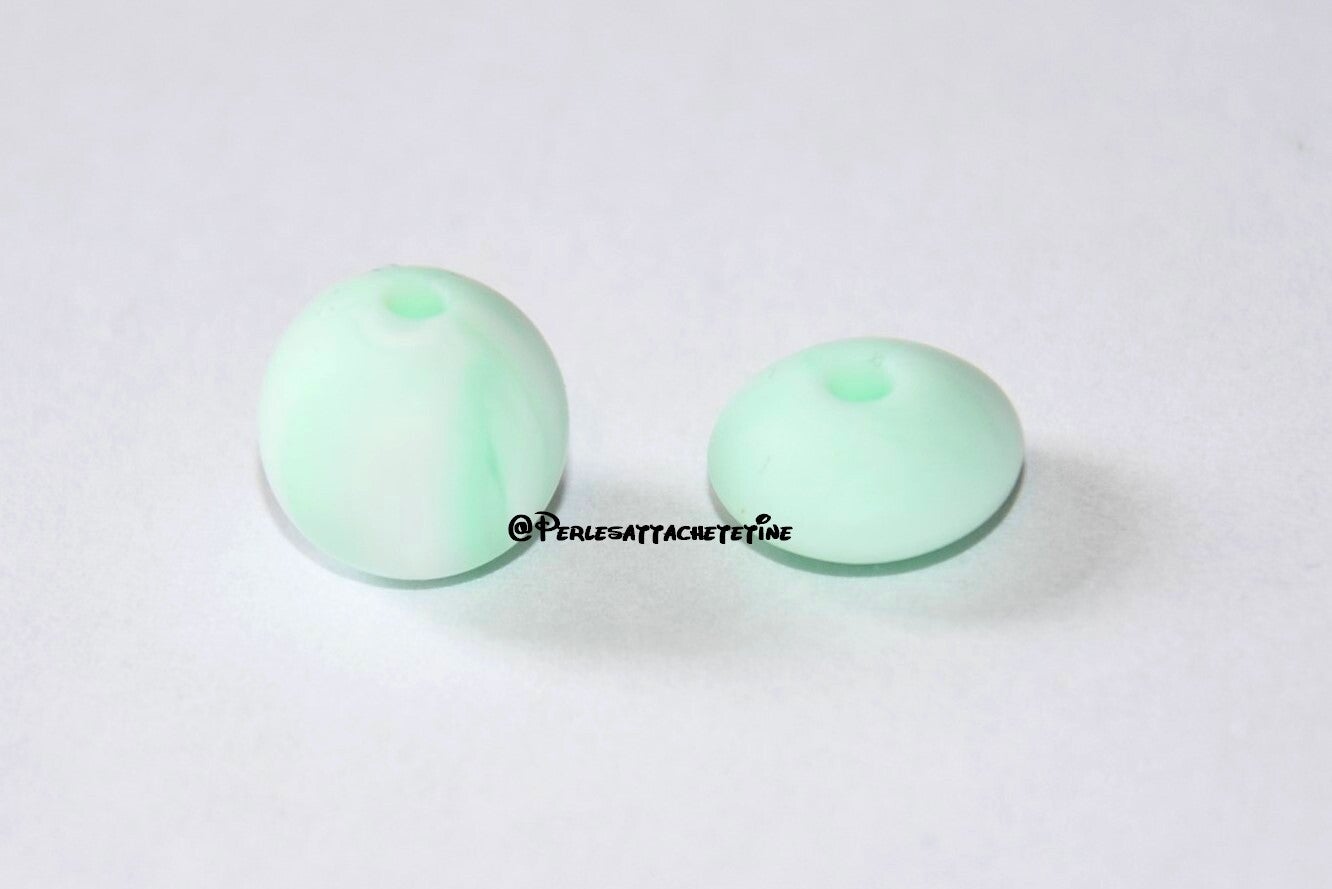 Perles silicone 12mm marbré menthe
