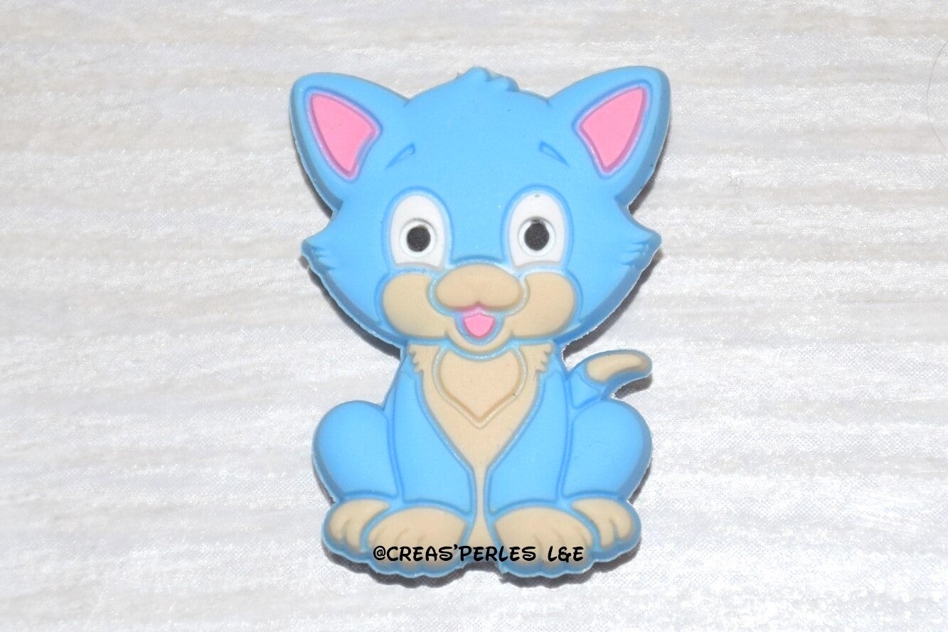 Perle chat bleu azur en silicone 22X30mm de qualité alimentaire.