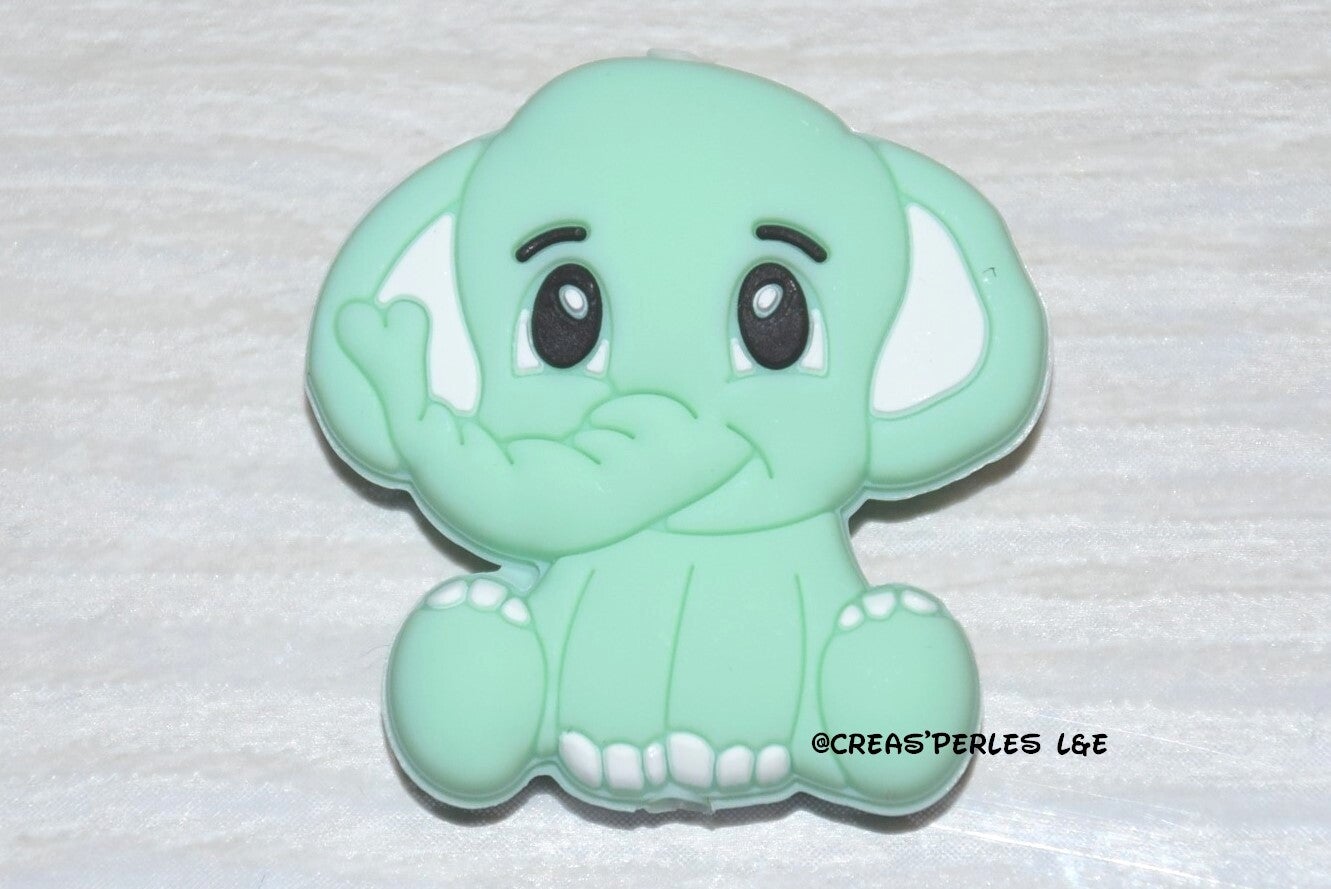 Perle éléphant menthe en silicone 30X30mm de qualité alimentaire.