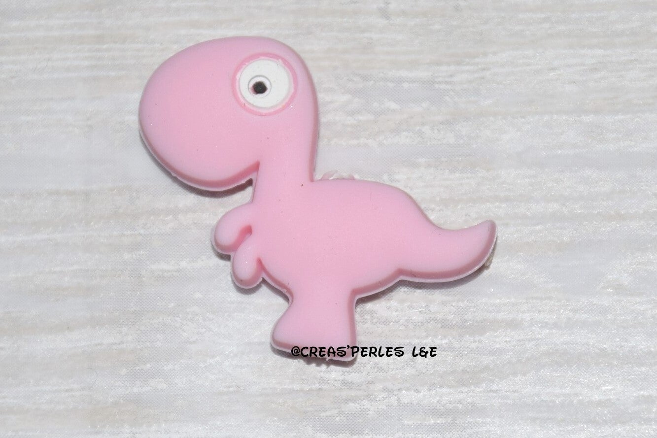 Perle dinosaure rose clair en silicone 28mmx28mm de qualité alimentaire.