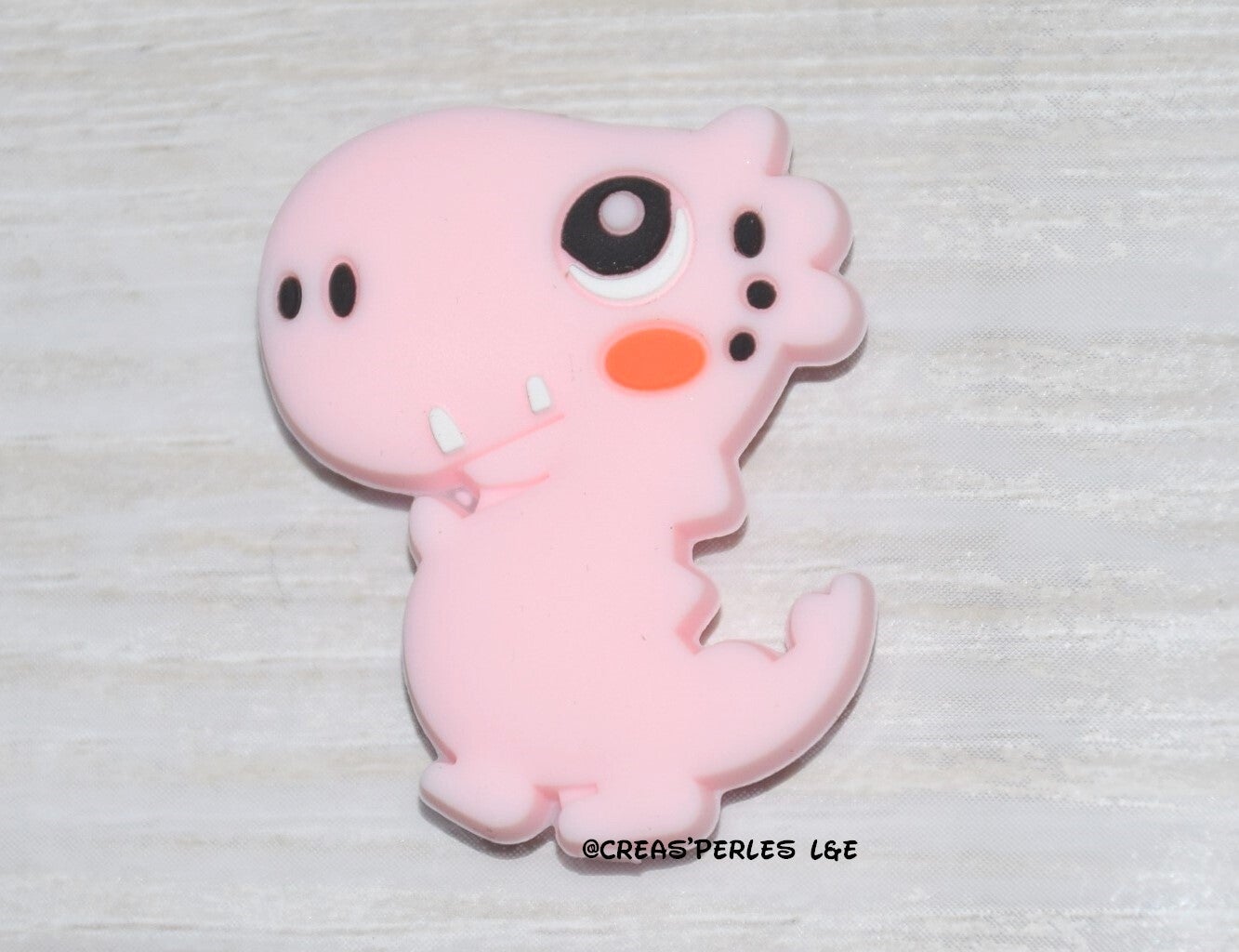 Perle dinosaure rose clair en silicone 27mmx34mm de qualité alimentaire.