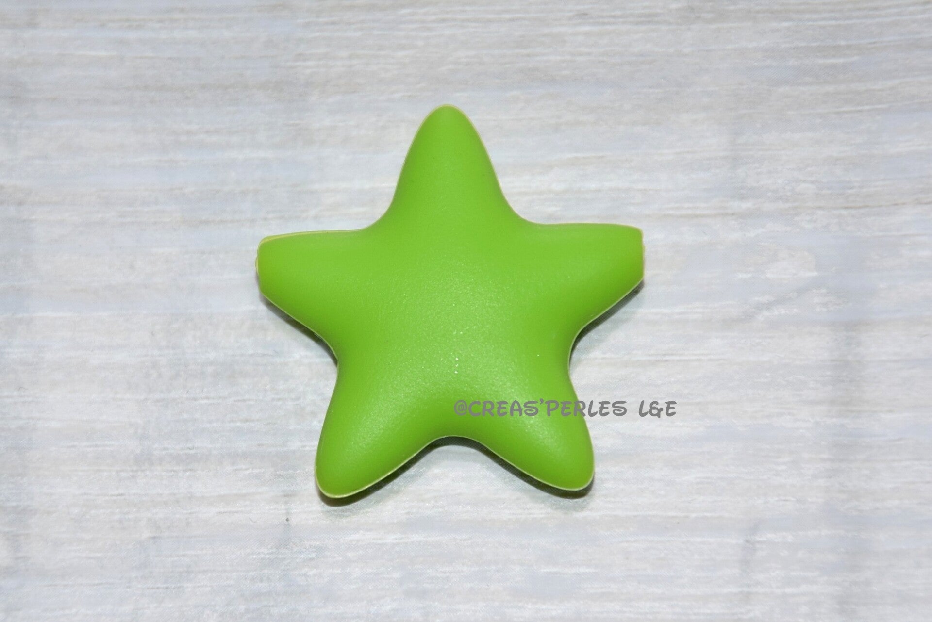 Perle étoile vert pomme en silicone 40mmx30mm de qualité alimentaire.