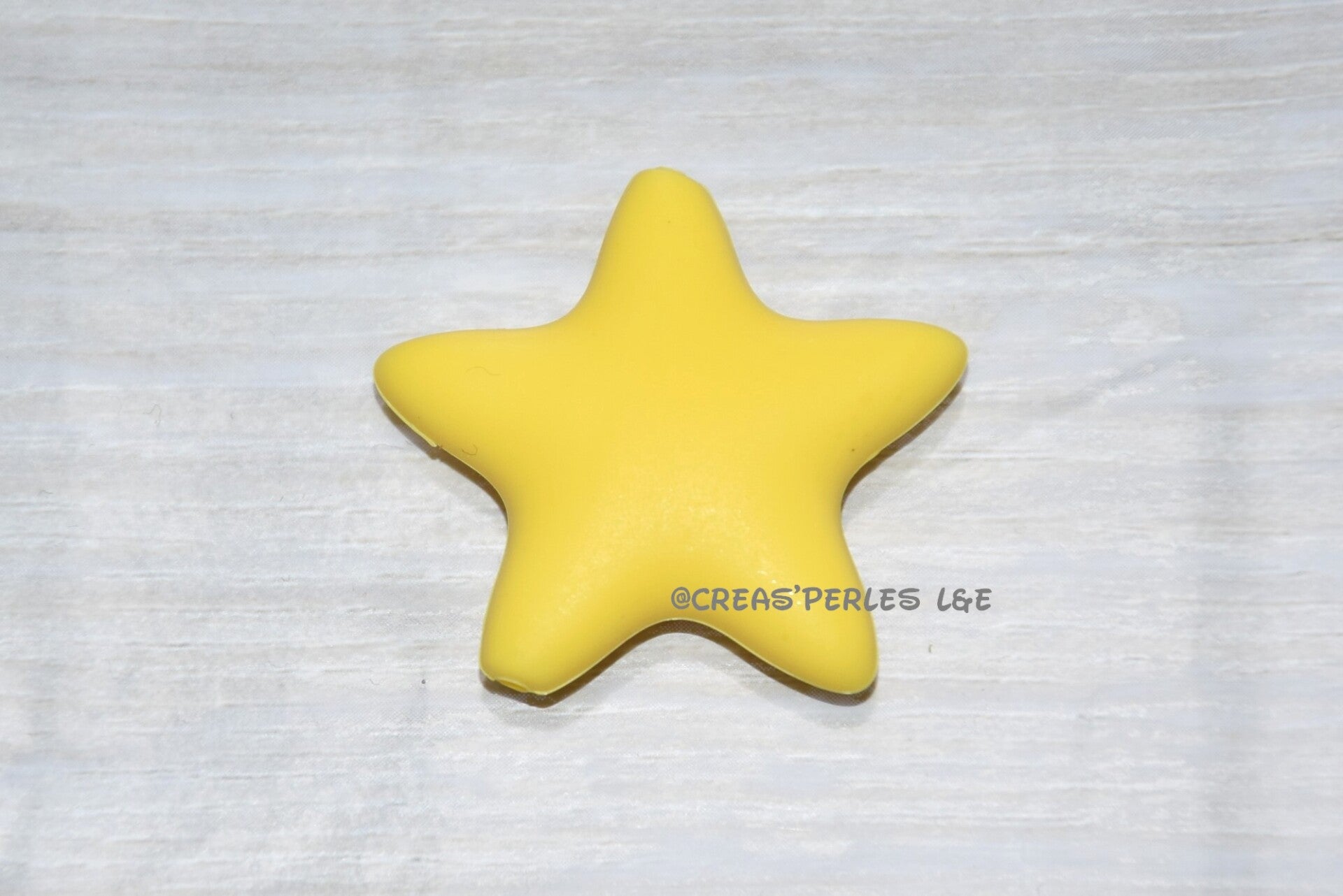 Perle étoile jaune en silicone 40mmx30mm de qualité alimentaire.