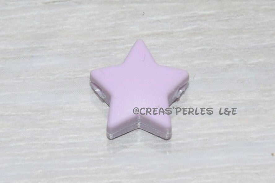Perle étoile lilas en silicone 15mm de qualité alimentaire.