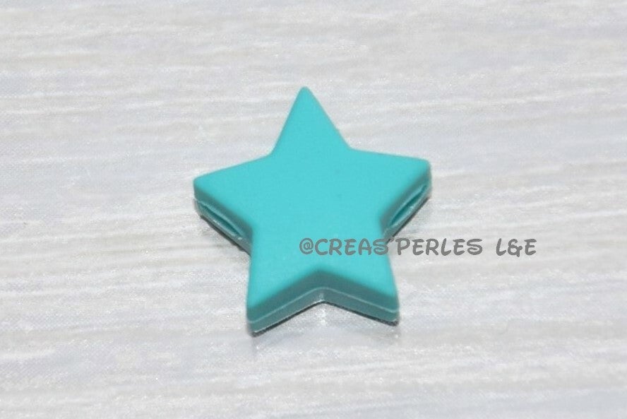 Perle étoile bleu turquoise en silicone 15mm de qualité alimentaire.