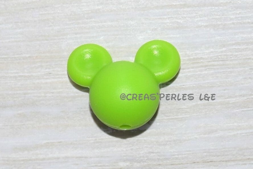 Perle Mickey vert pomme en silicone 20mmx15mm