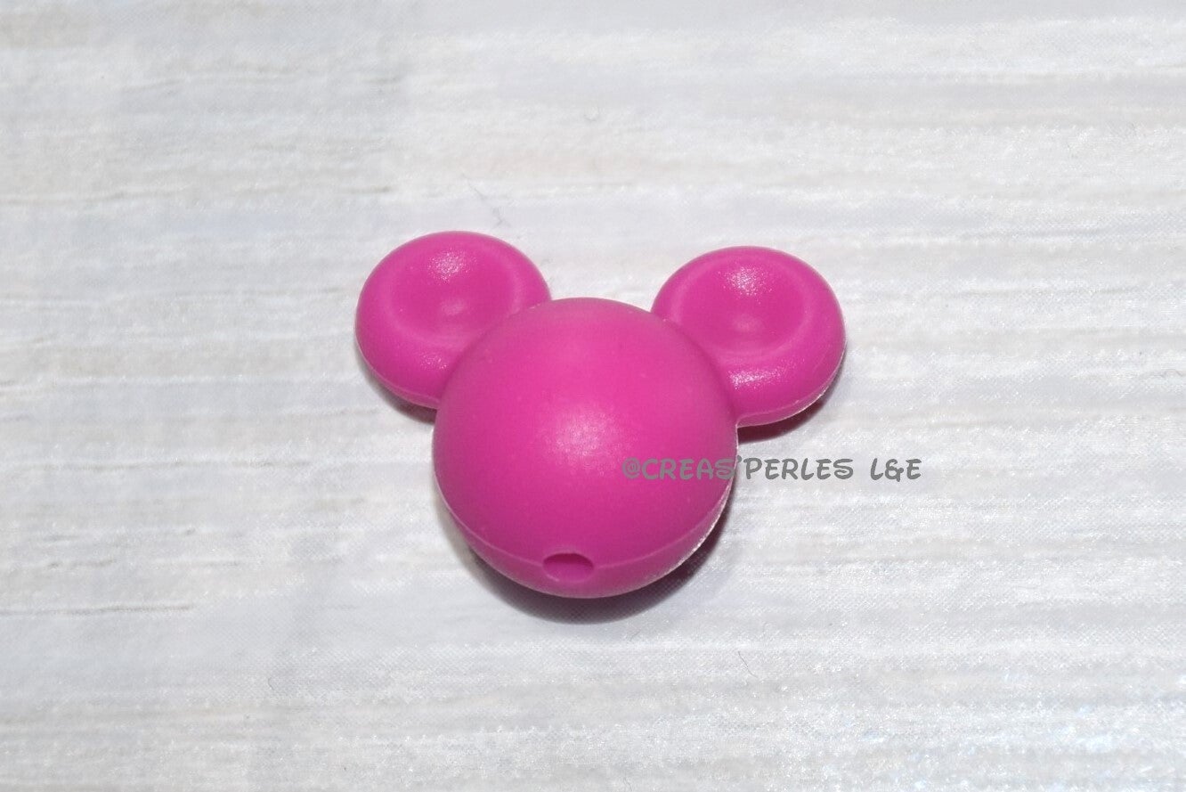 Perle Mickey rose fuchsia en silicone 20mmx15mm