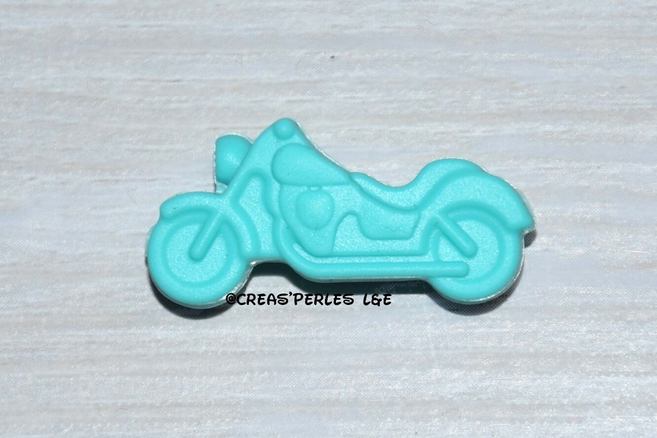 Perle moto bleu turquoise en silicone 30mmx15mm