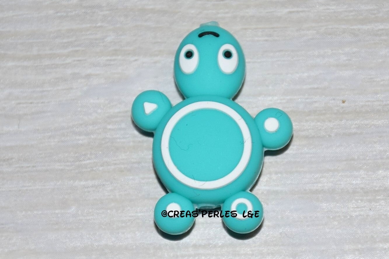 Perle tortue bleu turquoise en silicone 23mmx30mm