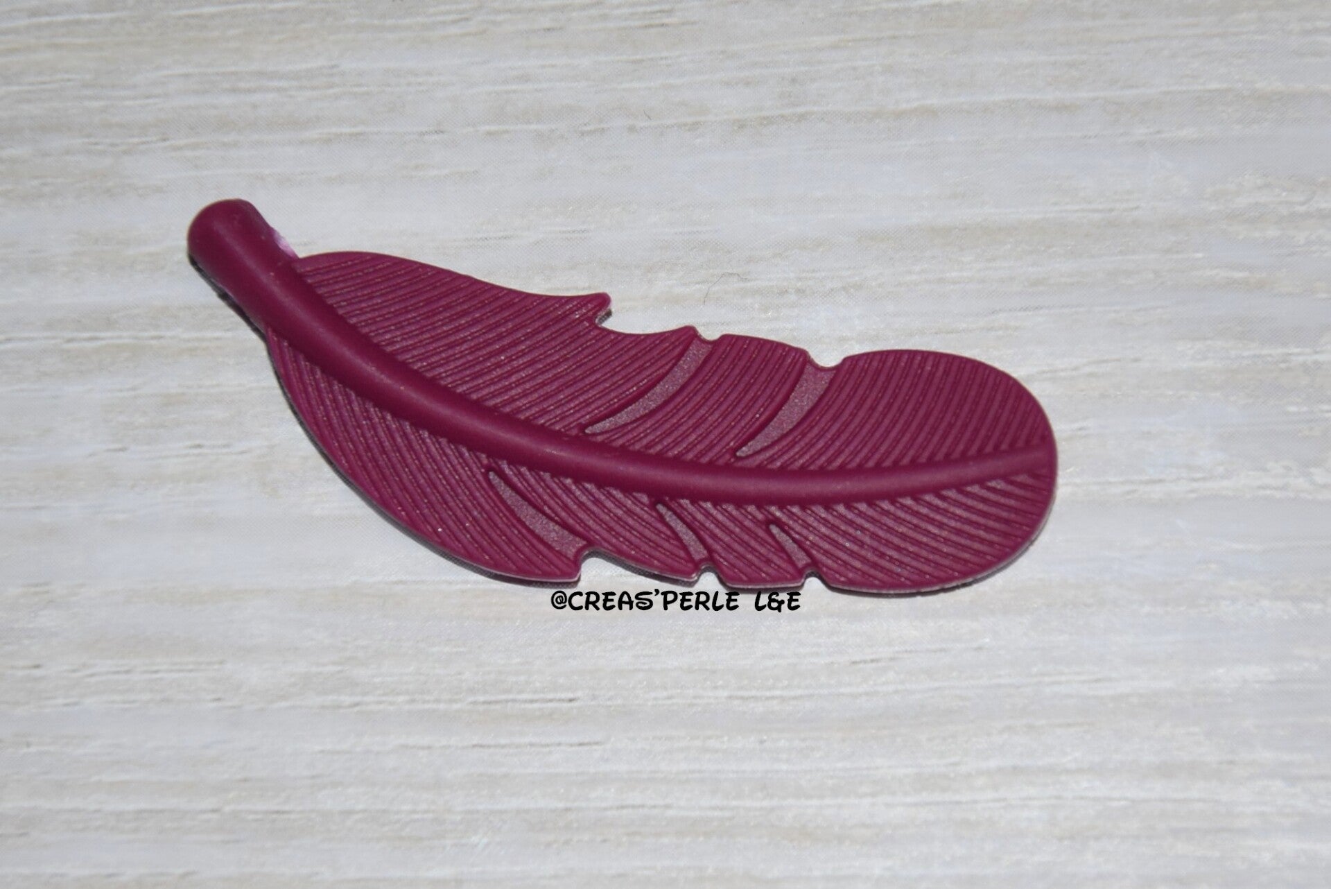 Perle silicone plume rouge vin en silicone 57mmx20mm