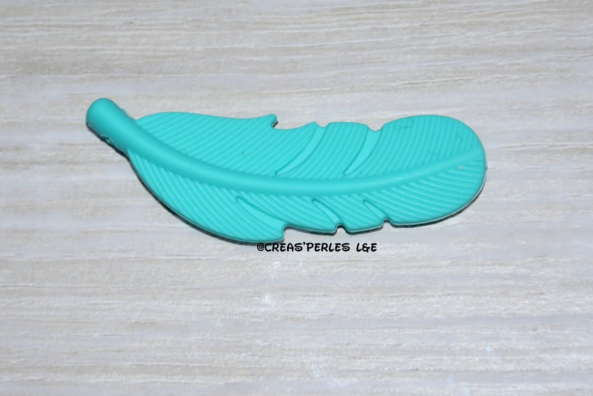 Perle silicone plume bleu turquoise en silicone 57mmx20mm