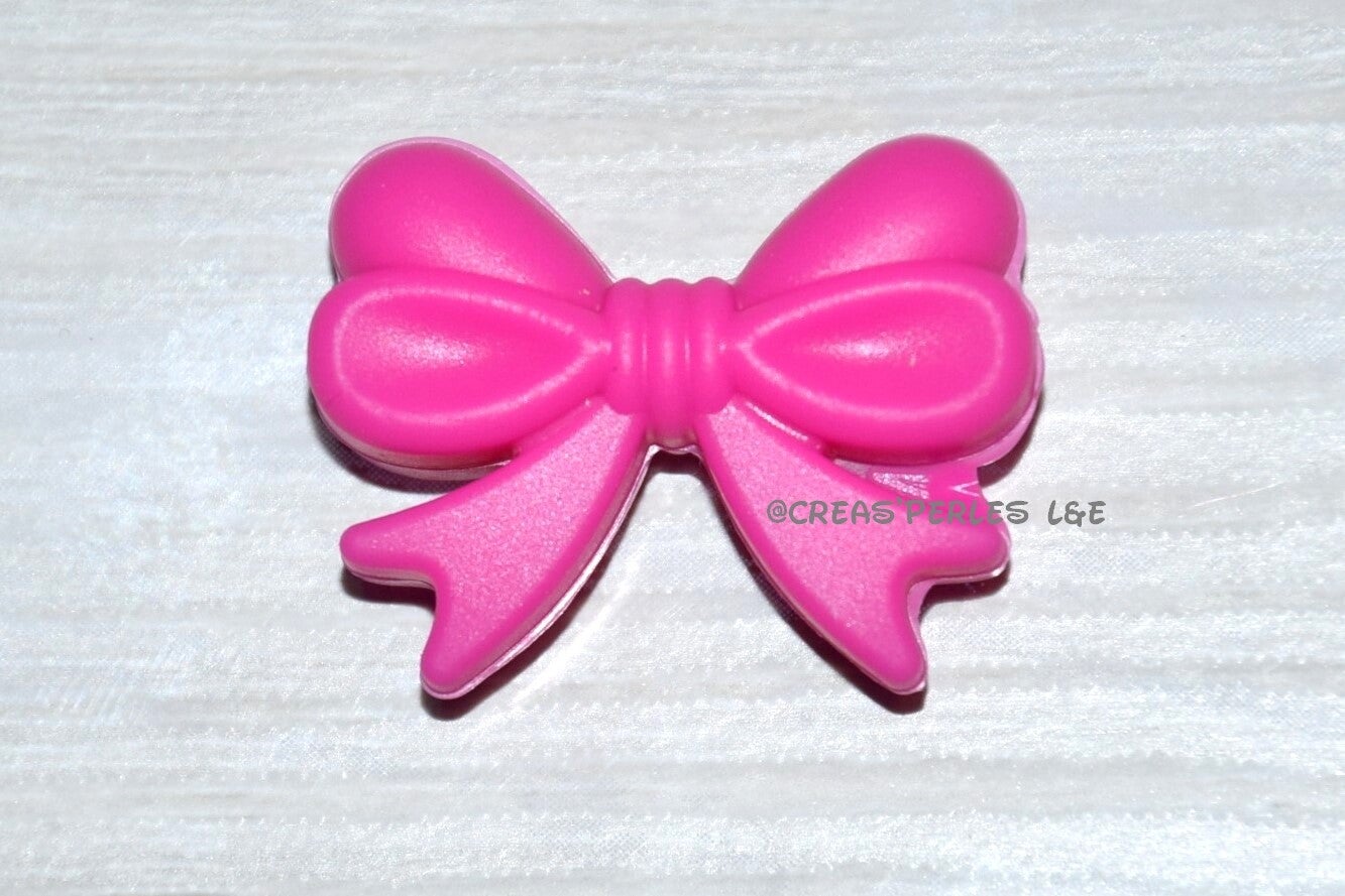 Perle noeud papillon rose fuchsia en silicone 26mmx26mm