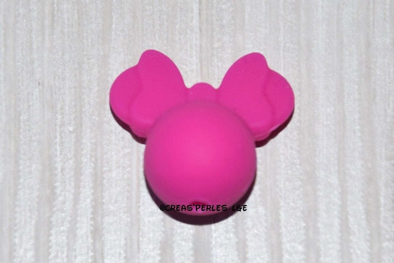 Perle souris noeud rose fuchsia en silicone 22mmx20mm