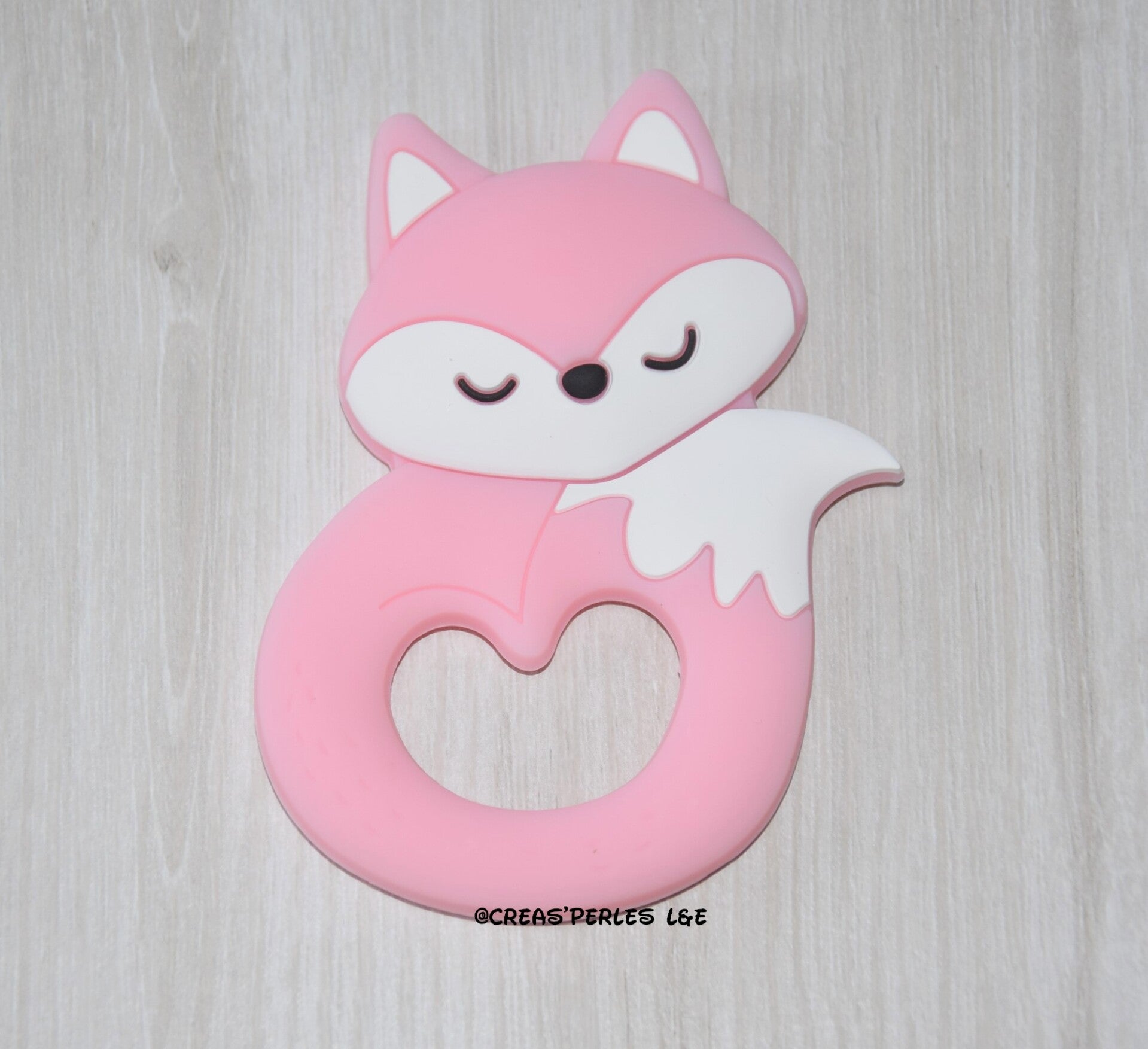 Anneau de dentition en silicone renard entier rose clair 60mmx95mm