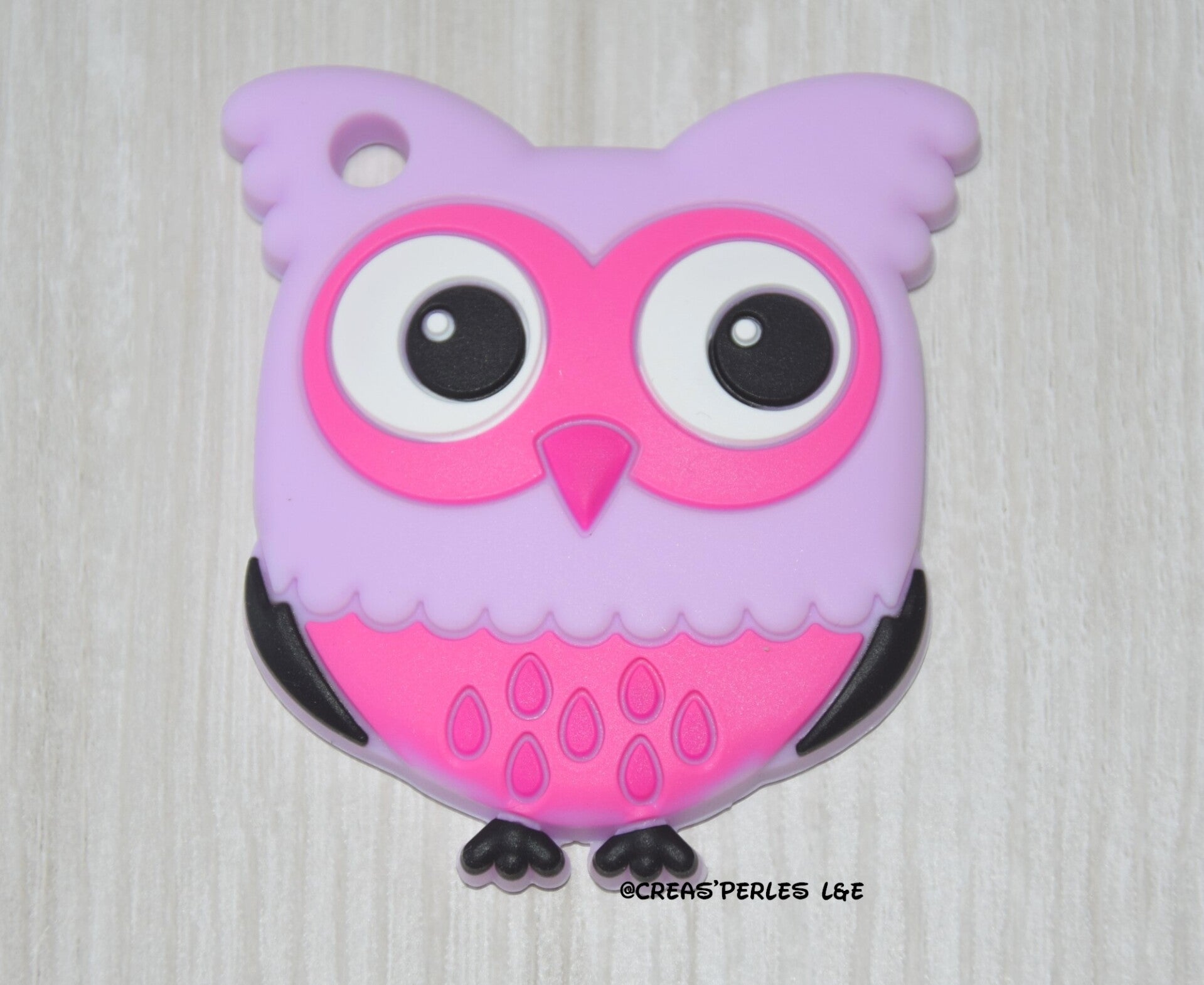 Anneau de dentition en silicone hibou lilas/fuchsia 65mmx70mm