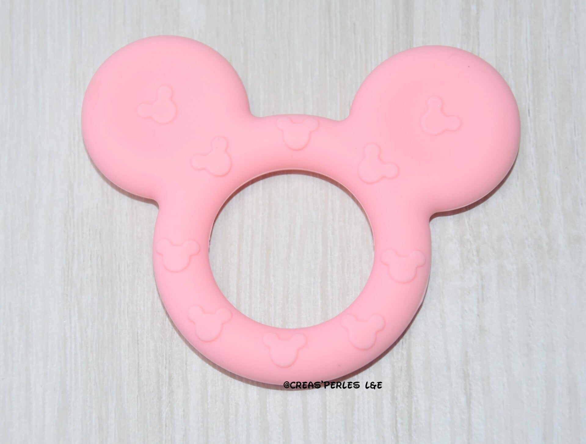 Anneau de dentition en silicone souris rose candy 80mmx55mm