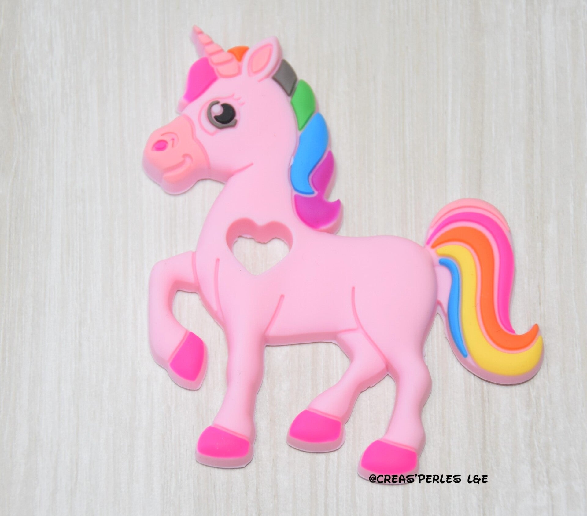 Anneau de dentition en silicone licorne multicolore rose 65mmx90mm