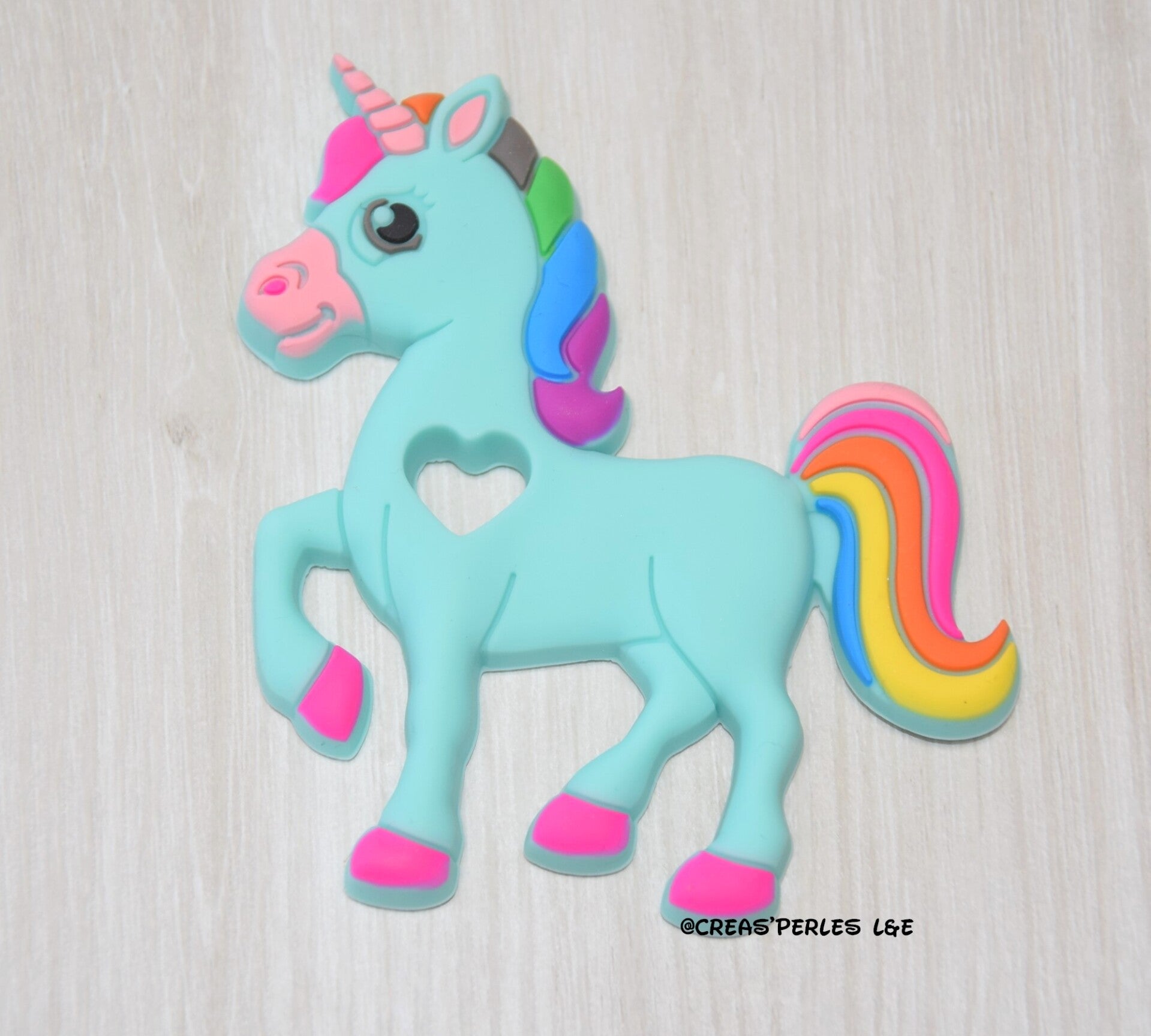 Anneau de dentition en silicone licorne multicolore bleu 65mmx90mm