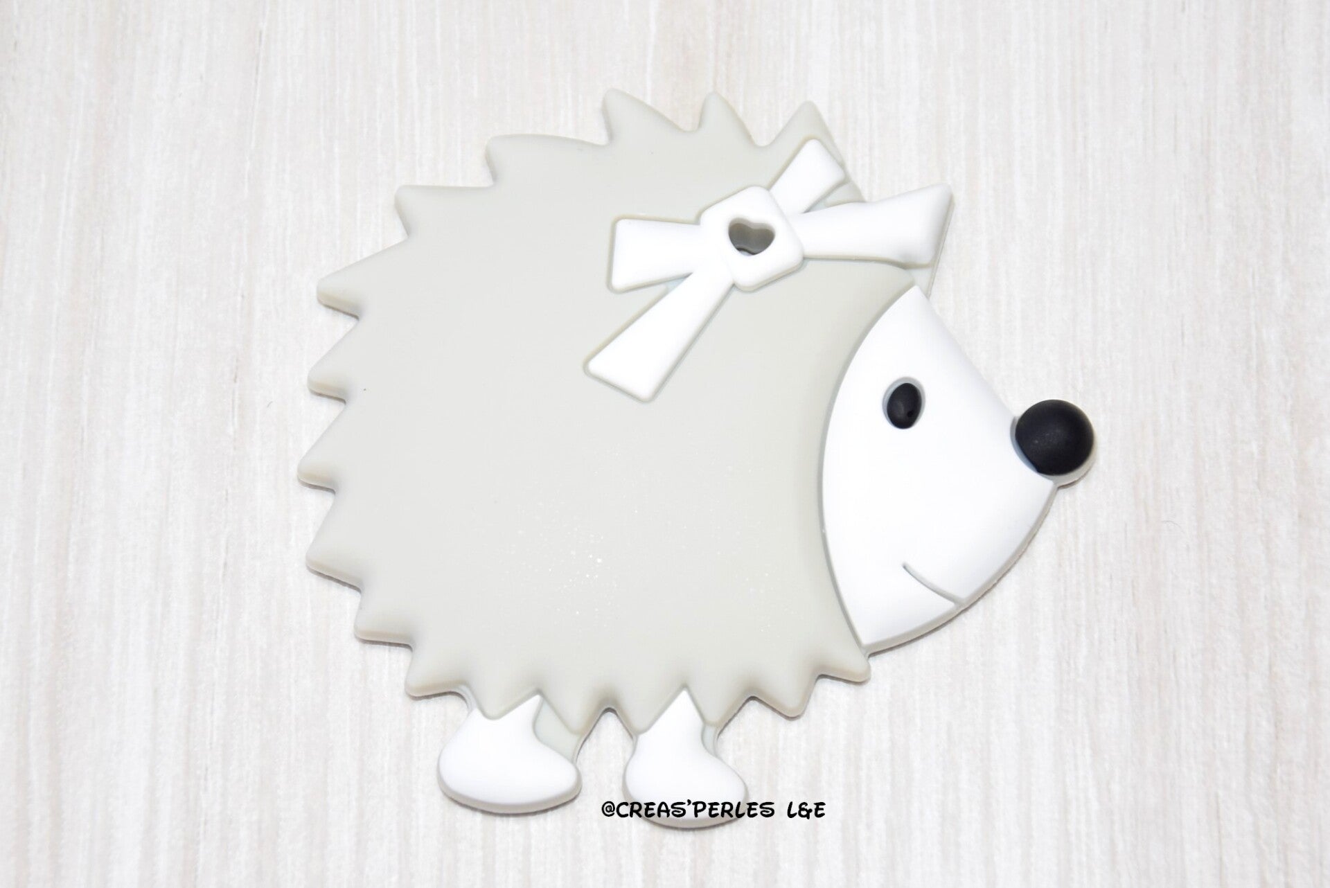 Anneau de dentition en silicone hérisson gris clair 70mmx65mm