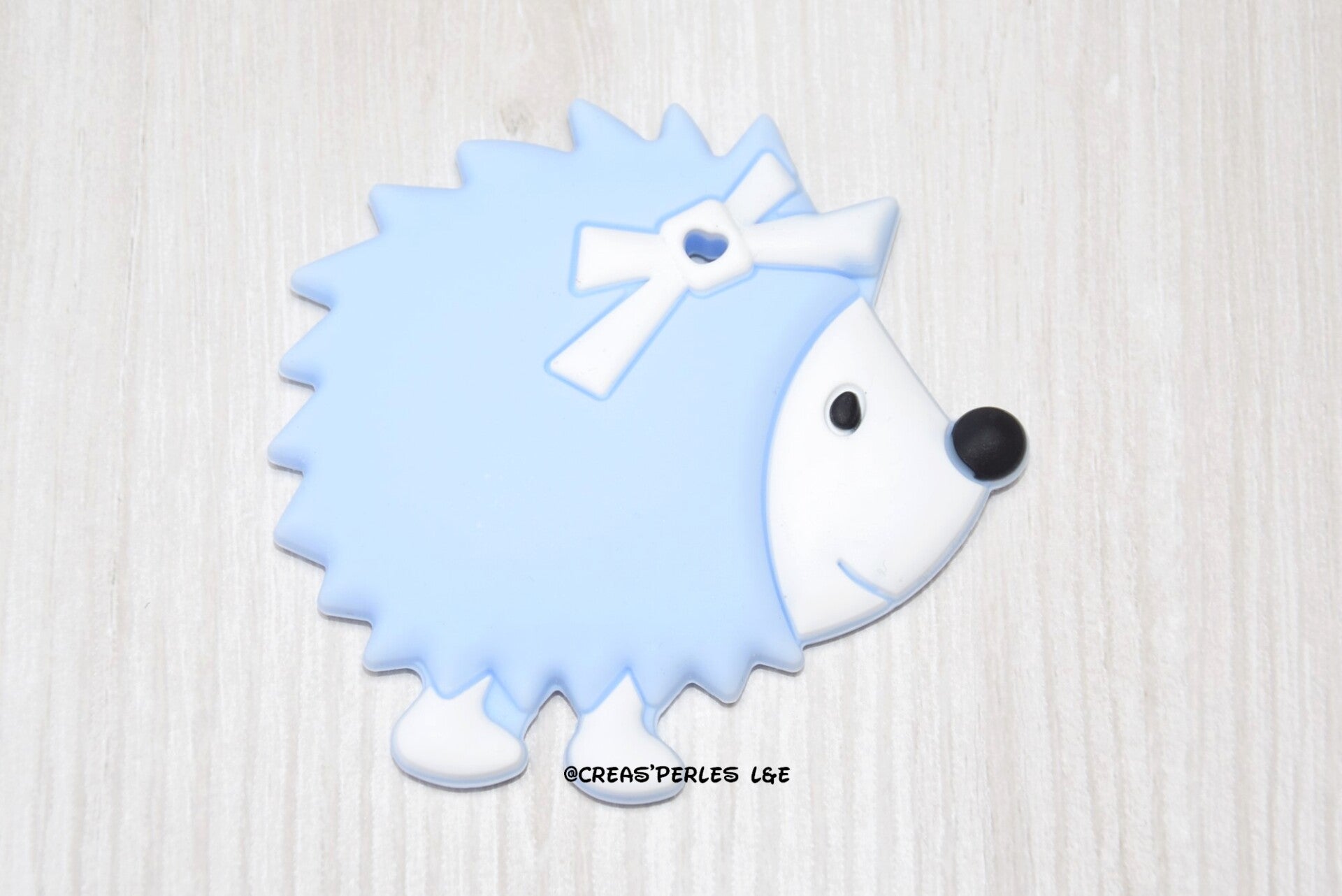 Anneau de dentition en silicone hérisson bleu clair 70mmx65mm