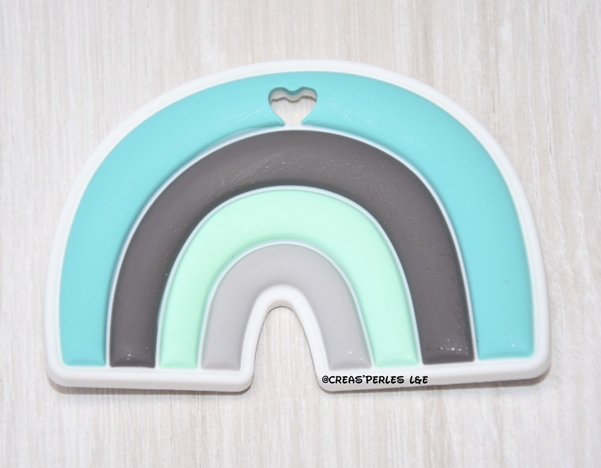 Anneau de dentition en silicone arc en ciel turquoise 90mmx60mm