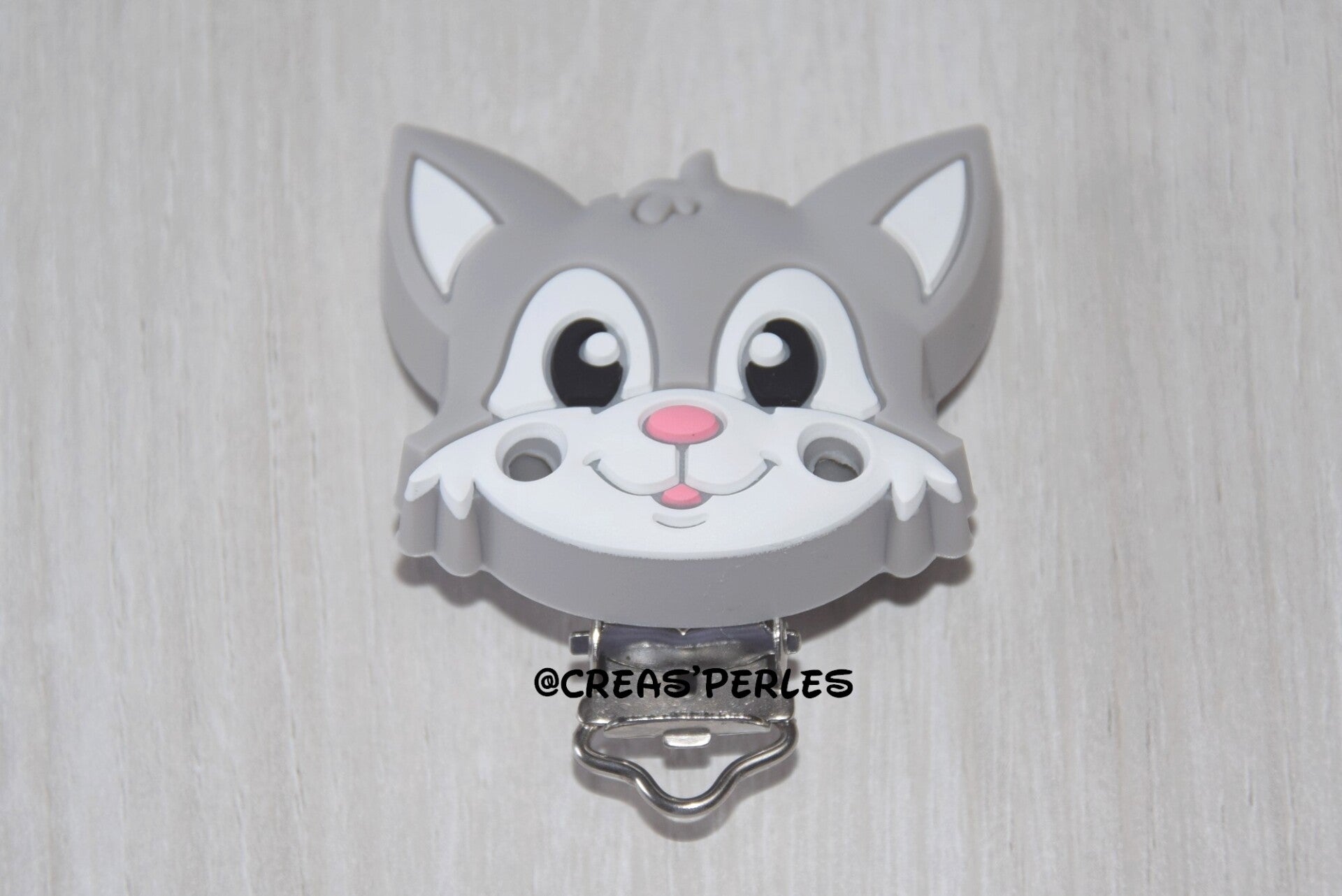 Clip silicone 2 trous de ventilation chat gris clair 45mmx38mm