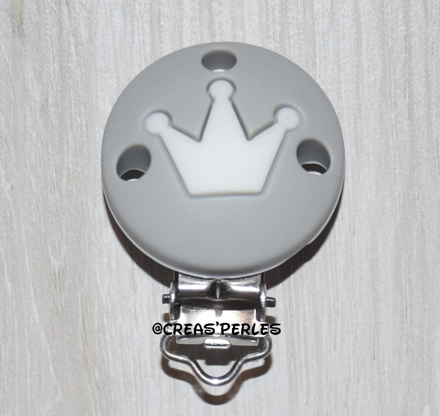 Clip silicone couronne gris clair