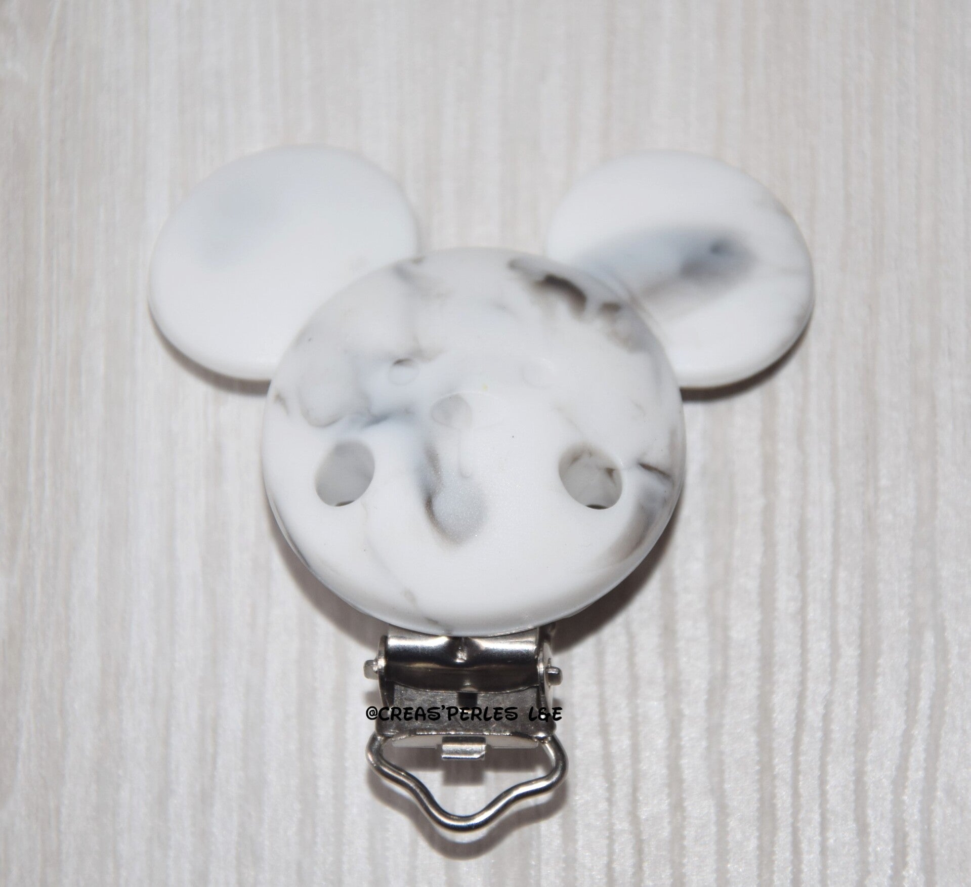 Clip silicone 2 trous de ventilation souris blanc marbré 55mmx50mm