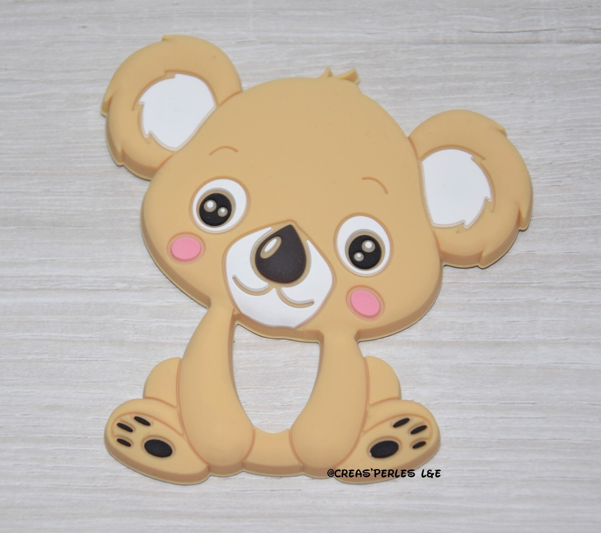 Anneau de dentition en silicone koala beige foncé 85mmx85mm.
