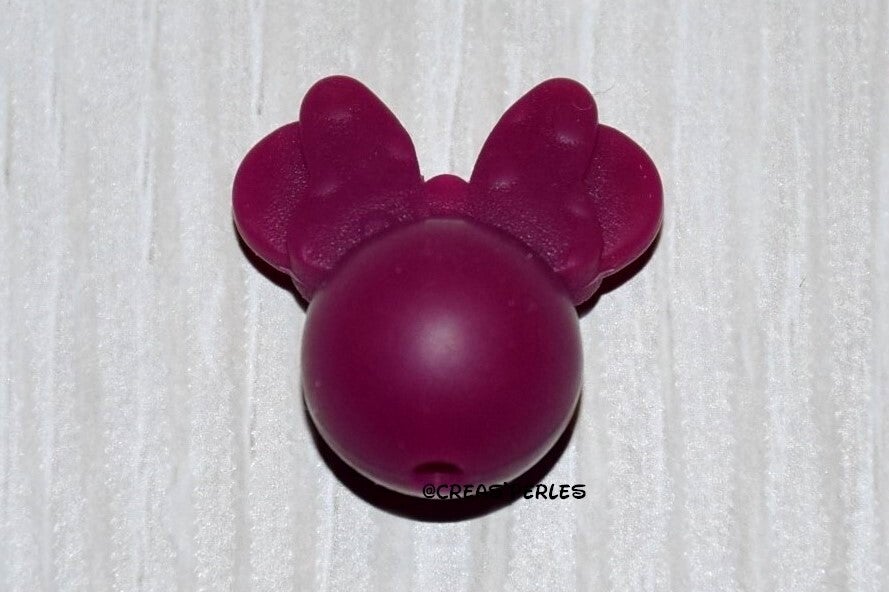 Perle souris noeud rouge vin en silicone 22mmx20mm