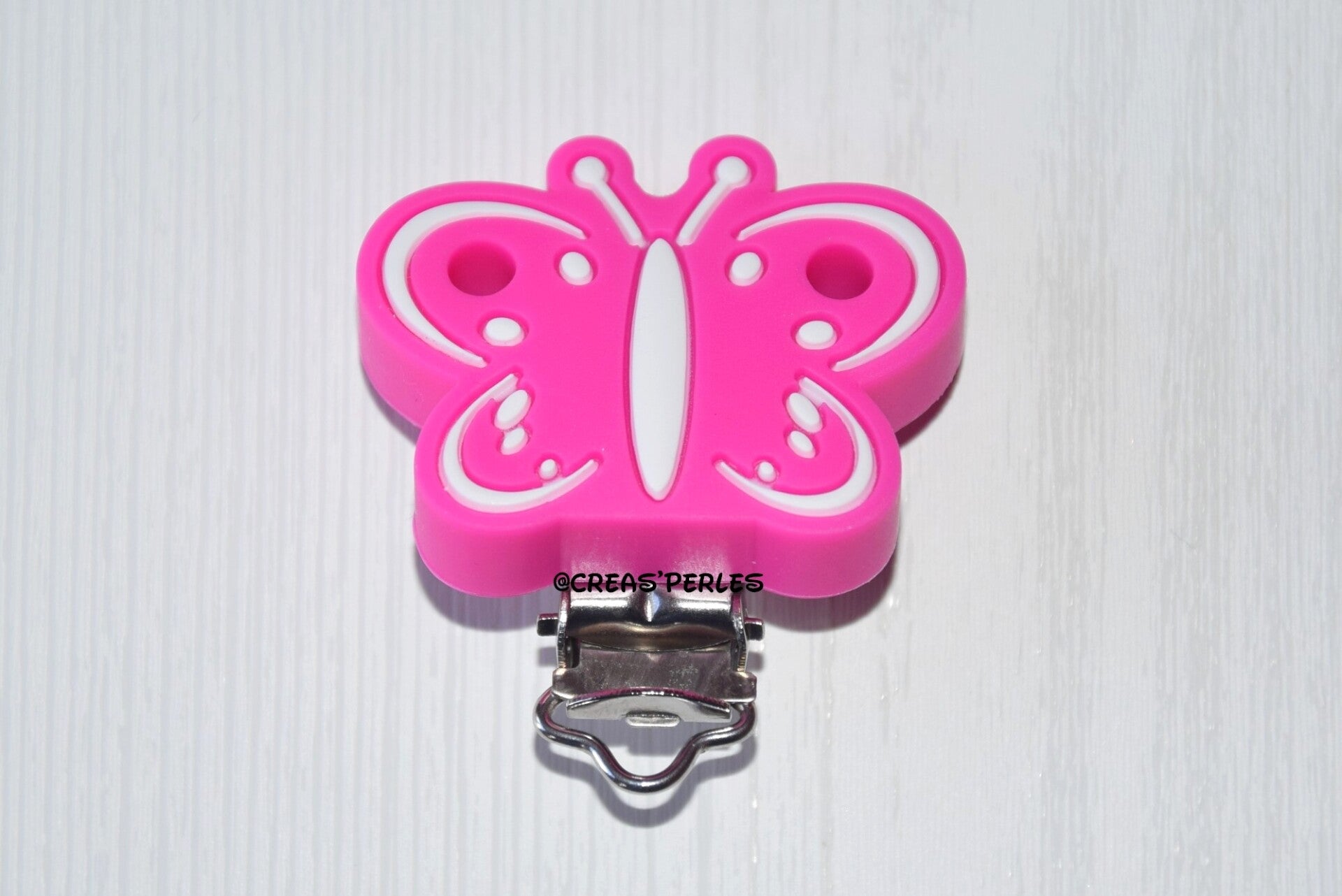 Clip silicone papillon trous rose fuchsia